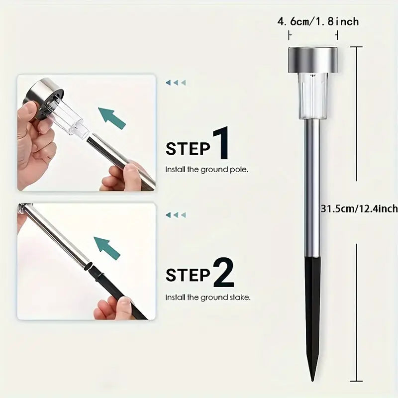 Illuminate your outdoor space with our elegant 10-Pack Solar LED Stake Lights. Made with stainless steel and powered by solar energy, our landscape lights add a touch of sophistication to your yard, pathway, or garden. Perfect for holiday parties and special events, no remote control needed with the built-in 40mAh nickel battery.