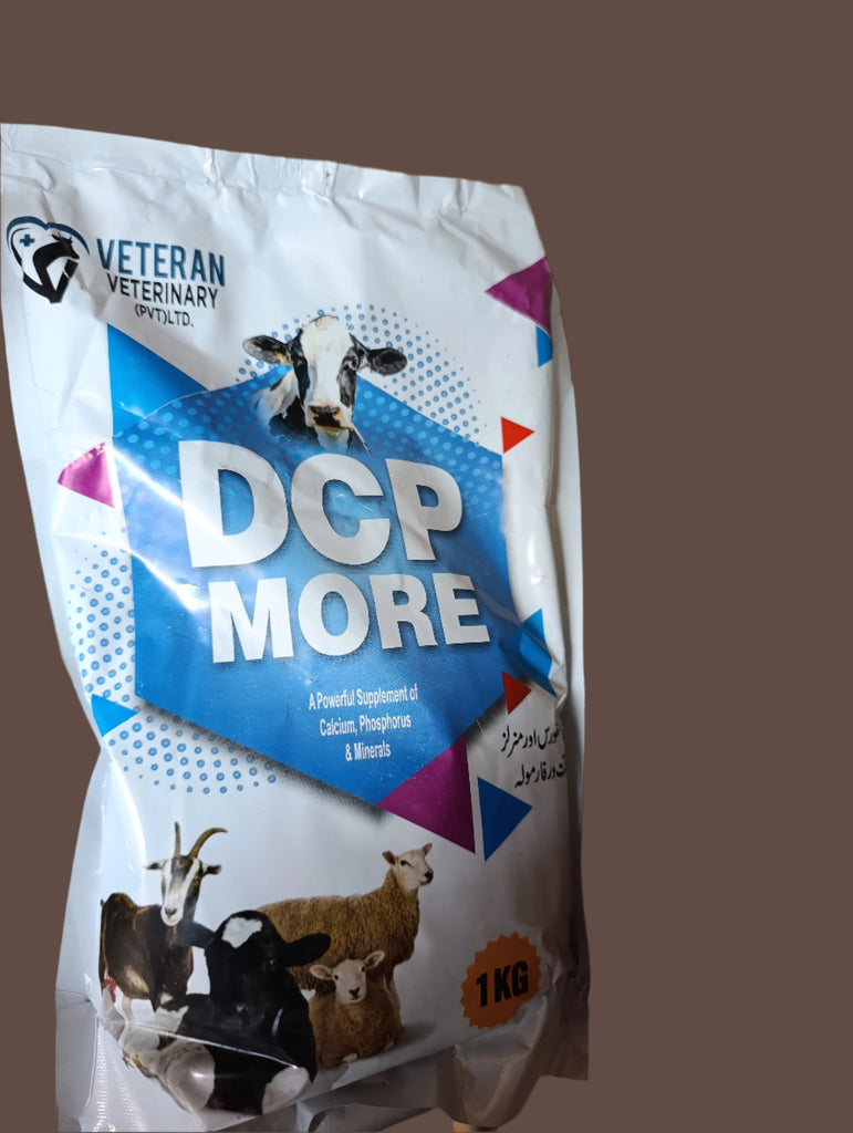DCP More (1Kg) is a nutritional supplement for cows, buffalos, sheep, and goats, formulated with calcium and phosphorus to support animal health, growth, and productivity.