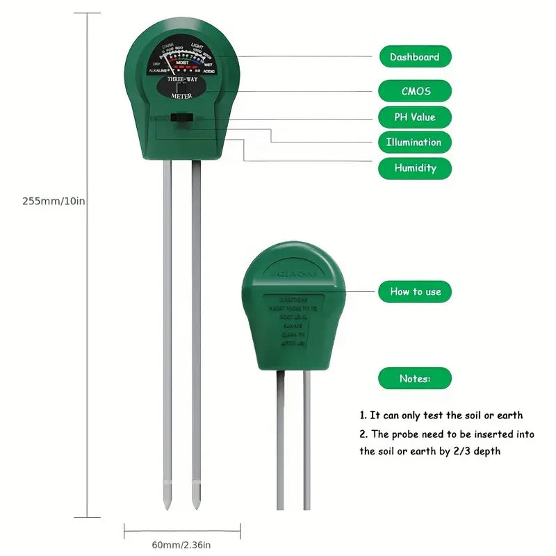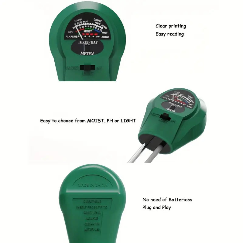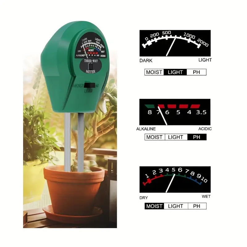 Enhance your garden's vitality with our 3-in-1 Soil PH Meter. This elegant and exclusive instrument uses advanced sensors to monitor moisture, acidity, and fertility levels, providing you with the necessary information to achieve optimal growth and bloom for your outdoor flowers. Elevate your gardening game with this essential tool.